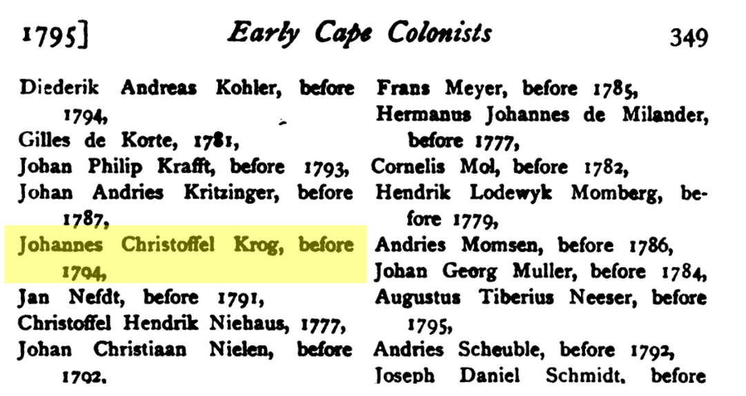 Johannes Christoffel Krog South Africa 1795
