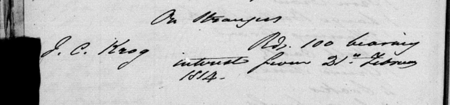 J C Krog’s loan is listed in a different column from the first three. The column his debt is listed under meant that the heirs had little confidence that he will be able to pay back the loan, but when he and / or the other four do, the widow will inform the Orphan Chamber19. This would suggest that J C Krog wasn’t financially well off.