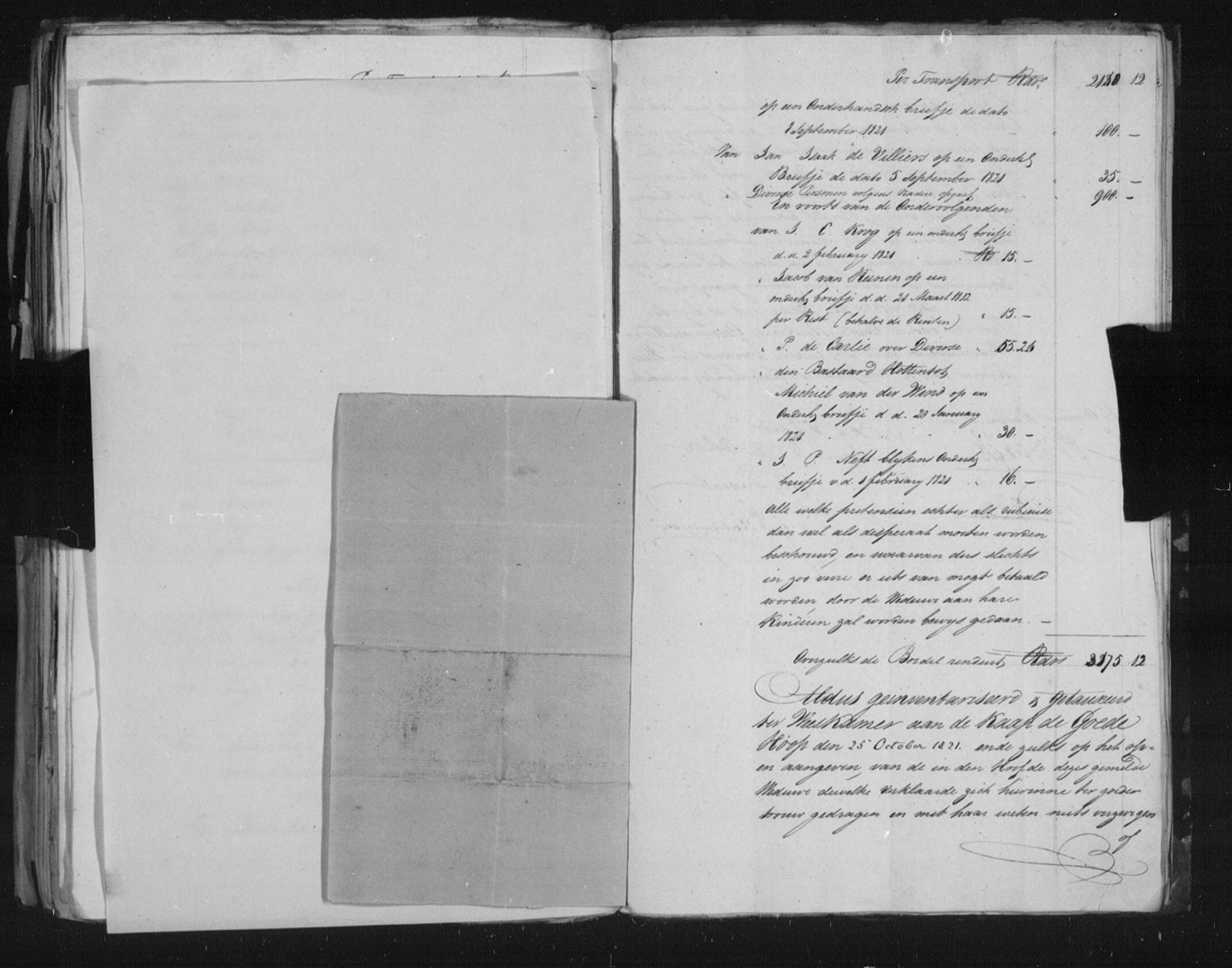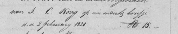 In the second (MOOC8/67.28a[6]), on 2 February 1821 J C Krog borrowed 15 “rijksdaalders”17 (= worth 37,50 guilders) of Gabriel Willem le Roux. He did so by a “onderhandsch briefje”. This means that the loan was put on paper and signed by J C Krog so the heirs would have a claim on of 15 rijksdaalders against J C Krog.