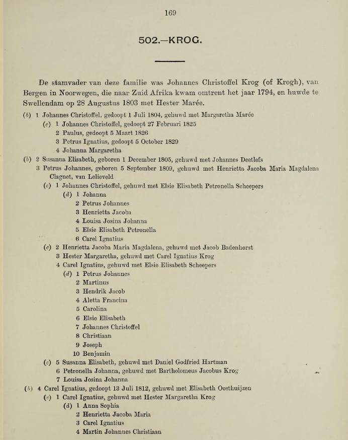 [2] Geslagsregisters van die ou Kaapse Families, p1330 (SAG Vol 4) See: https://www.stamouers.com/index.php/stamouers/k-to-m/269-krog-johann-christoffel & “Cape Town, Cape Province, South Africa records,” images, FamilySearch (https://www.familysearch.org/ark:/61903/3:1:3Q9M-CSFQ-SRPZ?view=index : Dec 15, 2024), image 43 of 157; Cape Dutch Reformed Church Archives. https://www.familysearch.org/ark:/61903/3:1:3Q9M-CSFQ-SRPZ?view=index